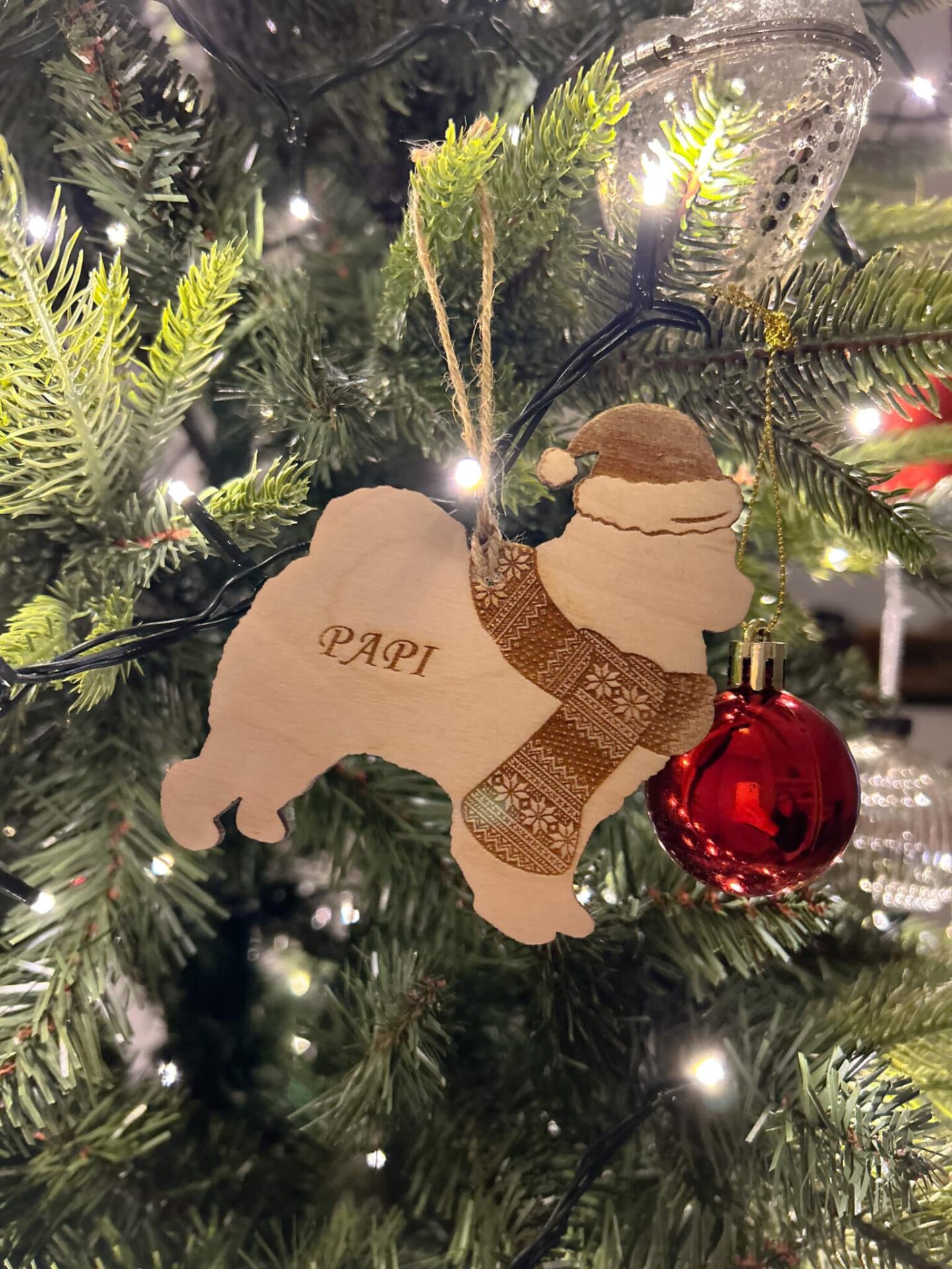 Anything goes when it comes to your Christmas tree! I have a real mix of beautifully styled baubles to highly sentimental decorations. I love this decoration we got before we picked Papi up last year. I can’t believe it’s already our second Christmas with him this year!