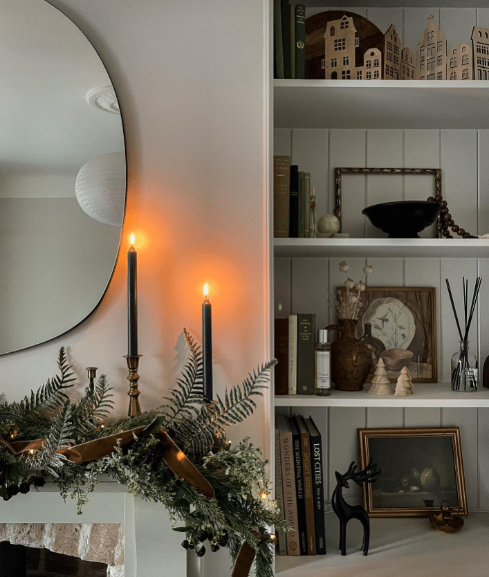 If you’ve built in shelving to your alcove, one of the simplest, but beautiful ways to elevate them is to add shiplap panelling or tongue and groove panels at the back of the shelves.