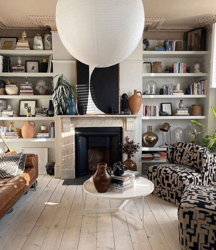 Shelves that are styled to perfection create a visually exciting space in a living room. Shelf styling doesn’t have to be perfect, interior design allows you to combine both new, vintage, old, greenery, books and everything in between for a beautiful finish.