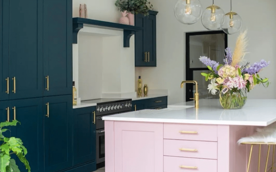 Who said pink can’t elegantly be brought into a kitchen design? In this beautiful two tonal kitchen design, the pink helps to bring a much softer aesthetic to the space that just works.