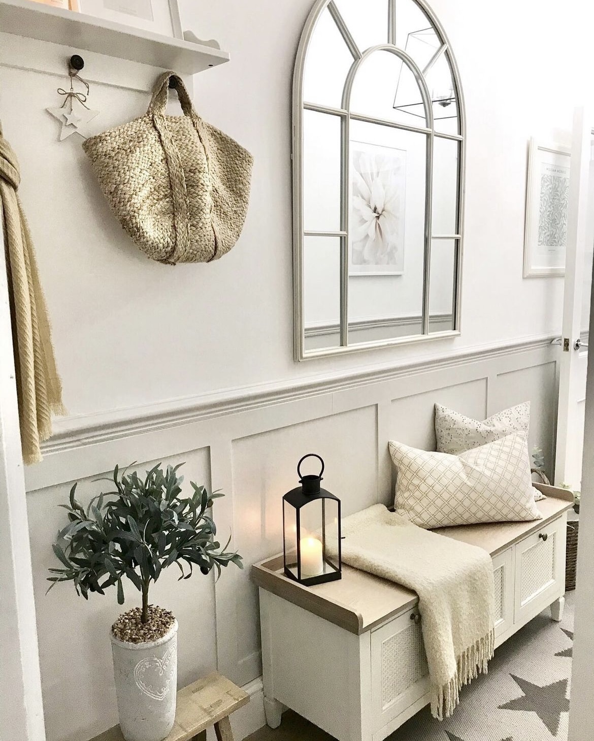 A perfect perch to use before leaving the house, and an area to store away everything out of sight. Top with a cushion and throw for added texture in the space.